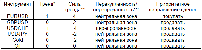Текущая техническая картина по основным финансовым активам представлена в таблице ниже. Данная картина формируется аналитиками «Admiral Markets» ежедневно на базе анализа данных ряда технических индикаторов (используются дневные данные).