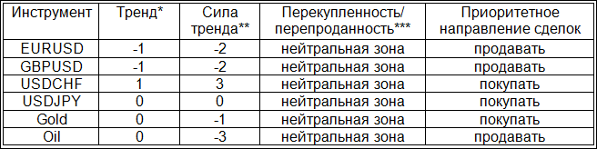 Текущая техническая картина по основным финансовым активам представлена в таблице ниже. Данная картина формируется аналитиками «Admiral Markets» ежедневно на базе анализа данных ряда технических индикаторов (используются дневные данные).