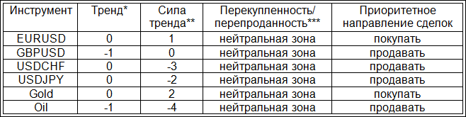 Текущая техническая картина по основным финансовым активам представлена в таблице ниже. Данная картина формируется аналитиками «Admiral Markets» ежедневно на базе анализа данных ряда технических индикаторов (используются дневные данные).